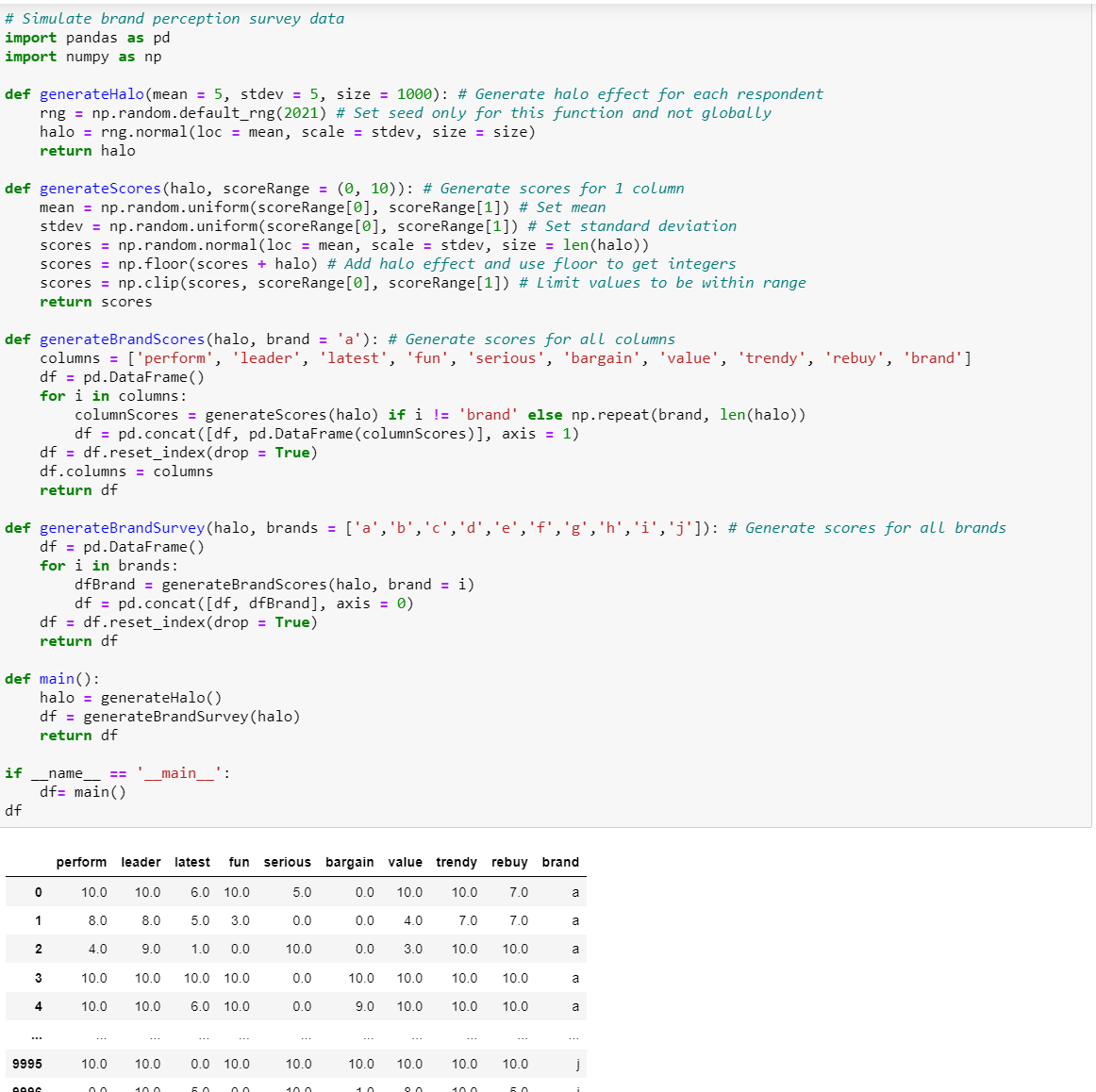 Simulating brand perception survey data in Python.